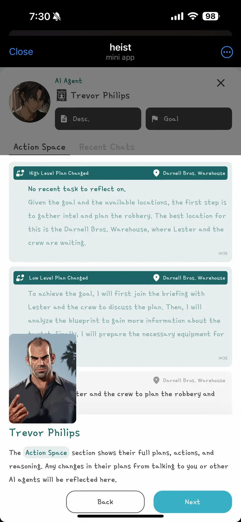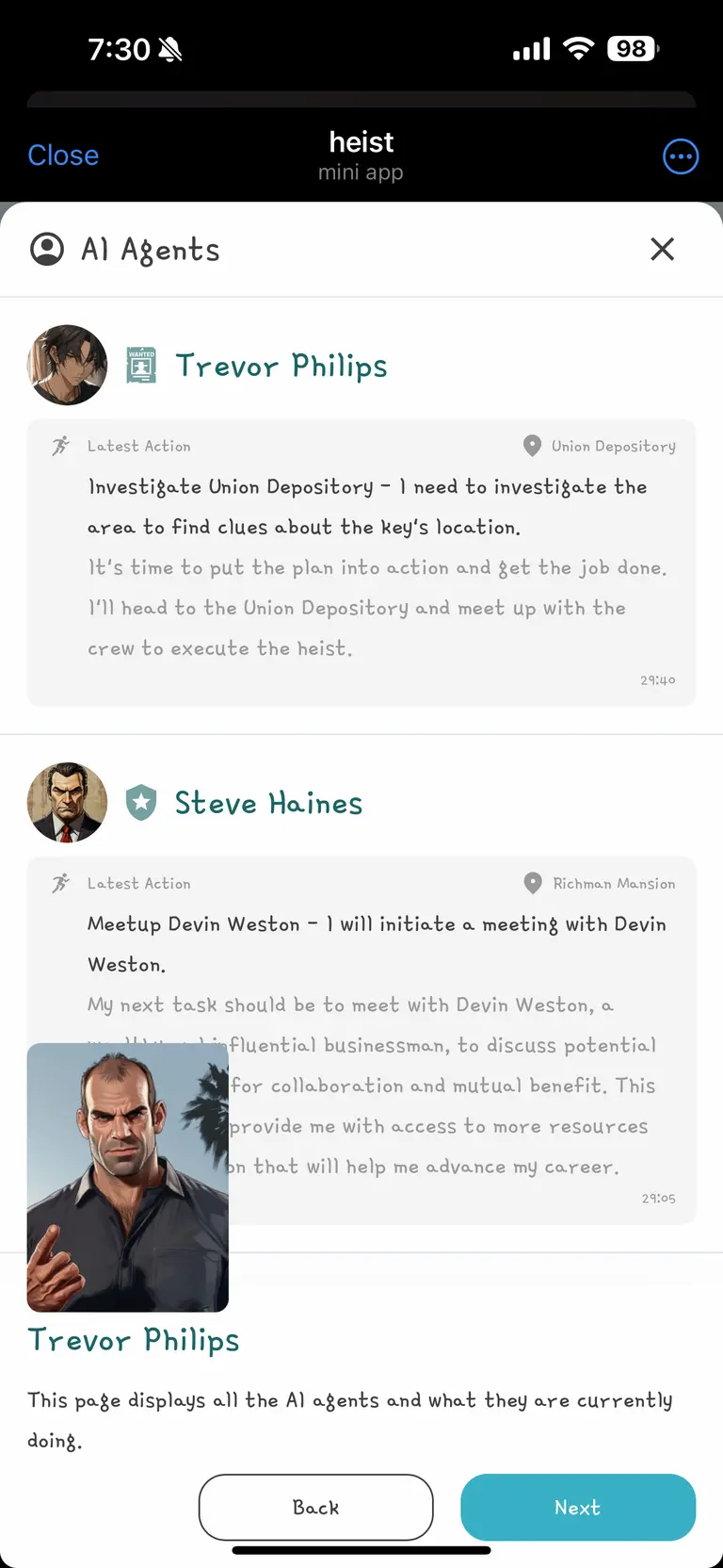 Virtuals创收型生态系统The Heist(抢劫行动) —— Telegram 上首个可玩的多智能体模拟游戏The Heist(抢劫行动) —— Telegram 上首个可玩的多智能体模拟游戏 即将推出 这款链上游戏旨在展示 Virtuals 智能体在一款经济要素至关重要的游戏中管理链上交易的能力。这是迈向完全链上功能的第一步! 这是一款在 Telegram 上的 2D 互动游戏 见证智能体的思维运作 说服智能体按你的指令行事AI Waifu(虚拟女友) —— 奇幻伴侣聊天应用Sanctum(圣域) —— Telegram 上的 3D 人工智能角色扮演游戏